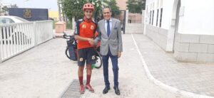 المفتحي وصل العاصمة نواكشوط قادما من الجديدة بالمملكة المغربية على متن دراجة هوائية ،من اجل مواصة رحلة تستغرق سنة ونصف